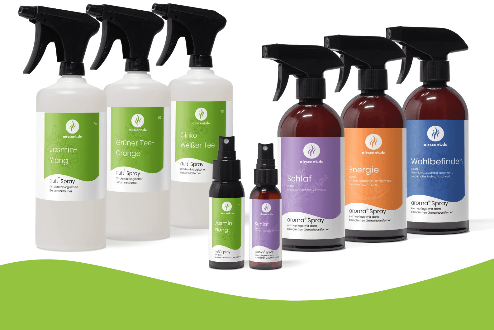 Alle unsere airscent Duftsprays sorgen für eine gesundheitsfreundliche Beduftung und biologische Geruchsentfernung in jedem Raum. Einfach sprühen und wohlfühlen!