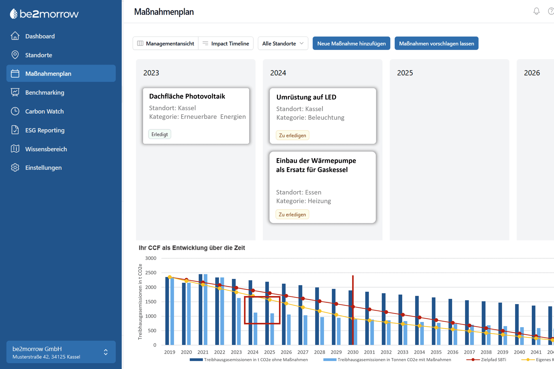 Auf dieser Basis erstellen Sie mit wenigen Klicks einen fundierten Klimamanagementplan, der alle Standorte Ihres Unternehmens zentral berücksichtigt. So erkennen Sie schnell, wo die größten Hebel liegen, und können gezielt die wirkungsvollste Strategie für Ihre Einrichtungen entwickeln.