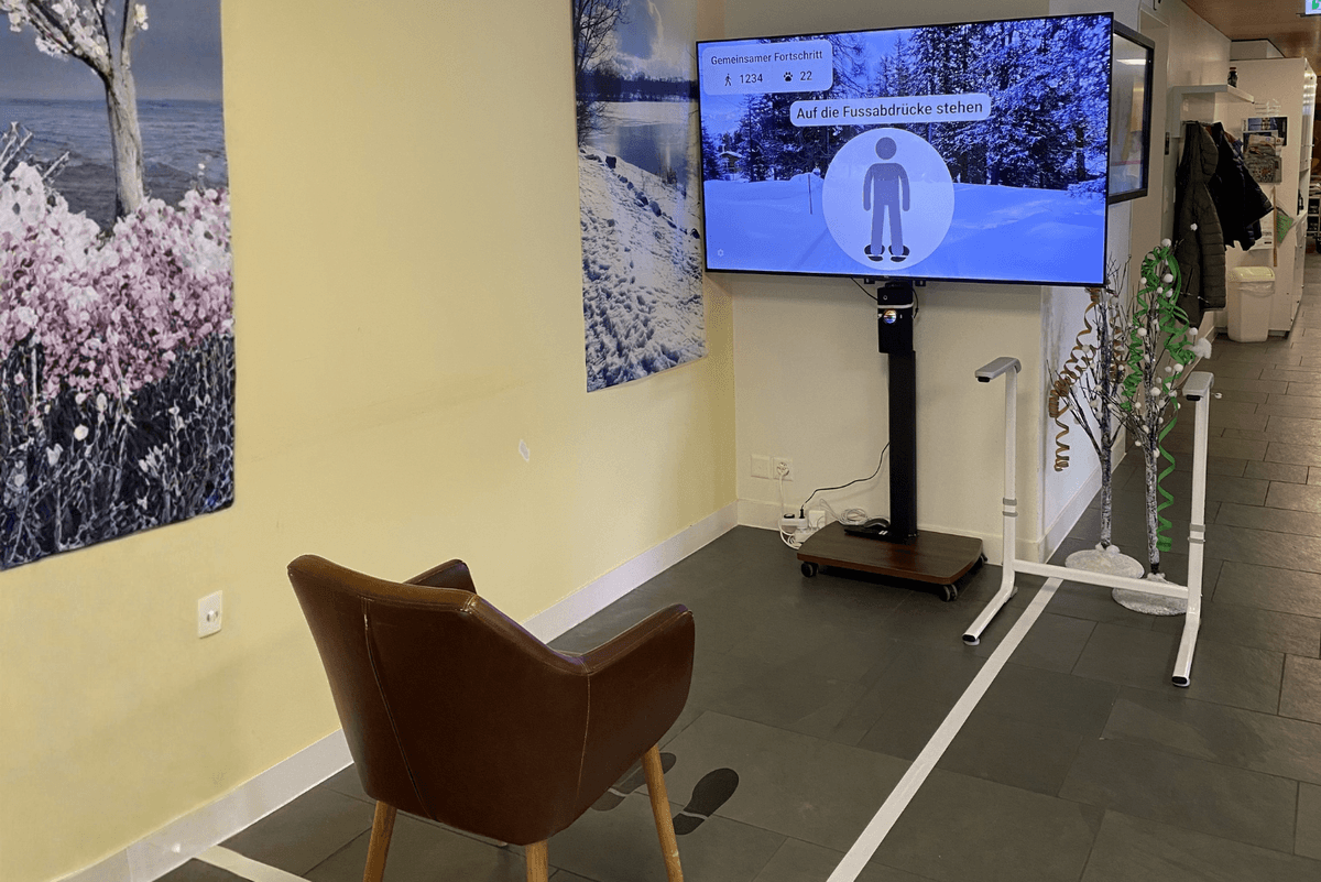 Lumova ist eine autonome Bewegungsinsel für Pflegeheime, entwickelt von ETH-Zürich-Studierenden. In Gemeinschaftsräumen oder Korridoren ermöglicht sie kurze, spontane Bewegungseinheiten im Alltag. BewohnerInnen bewegen sich auf der Stelle und erkunden virtuelle Spaziergänge, reagieren auf Tiere und lösen schrittweise kognitiv-motorische Aufgaben. Lumova funktioniert vollständig offline, passt sich unterschiedlichen Fähigkeiten an und unterstützt sitzende sowie stehende Nutzung. Das System wird aktuell in neun Pflegeheimen in der Schweiz getestet und laufend weiterentwickelt.