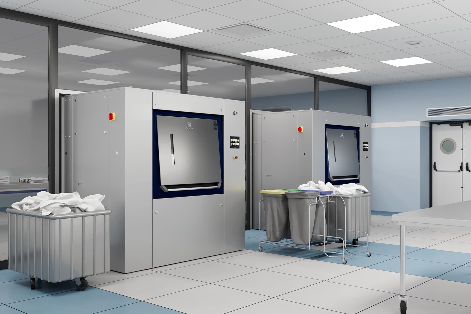 The washing machines from Electrolux Professional stand for maximum efficiency, durability, and hygienic cleanliness – engineered for the demands of professional environments. The front‑loading washing machines impress with their robust construction, intuitive operation, and energy‑efficient washing technology that delivers consistently reliable results even under high workloads. Complementing them, the barrier washing machines provide an optimal solution for hygiene‑critical areas: they enable a clear black‑and‑white separation between clean and soiled sides, ensuring maximum process safety and infection prevention. Together, they form a powerful portfolio that elevates professional laundry operations to a new level. With loading capacities ranging from 6 to 110 kg, the machine ra ...