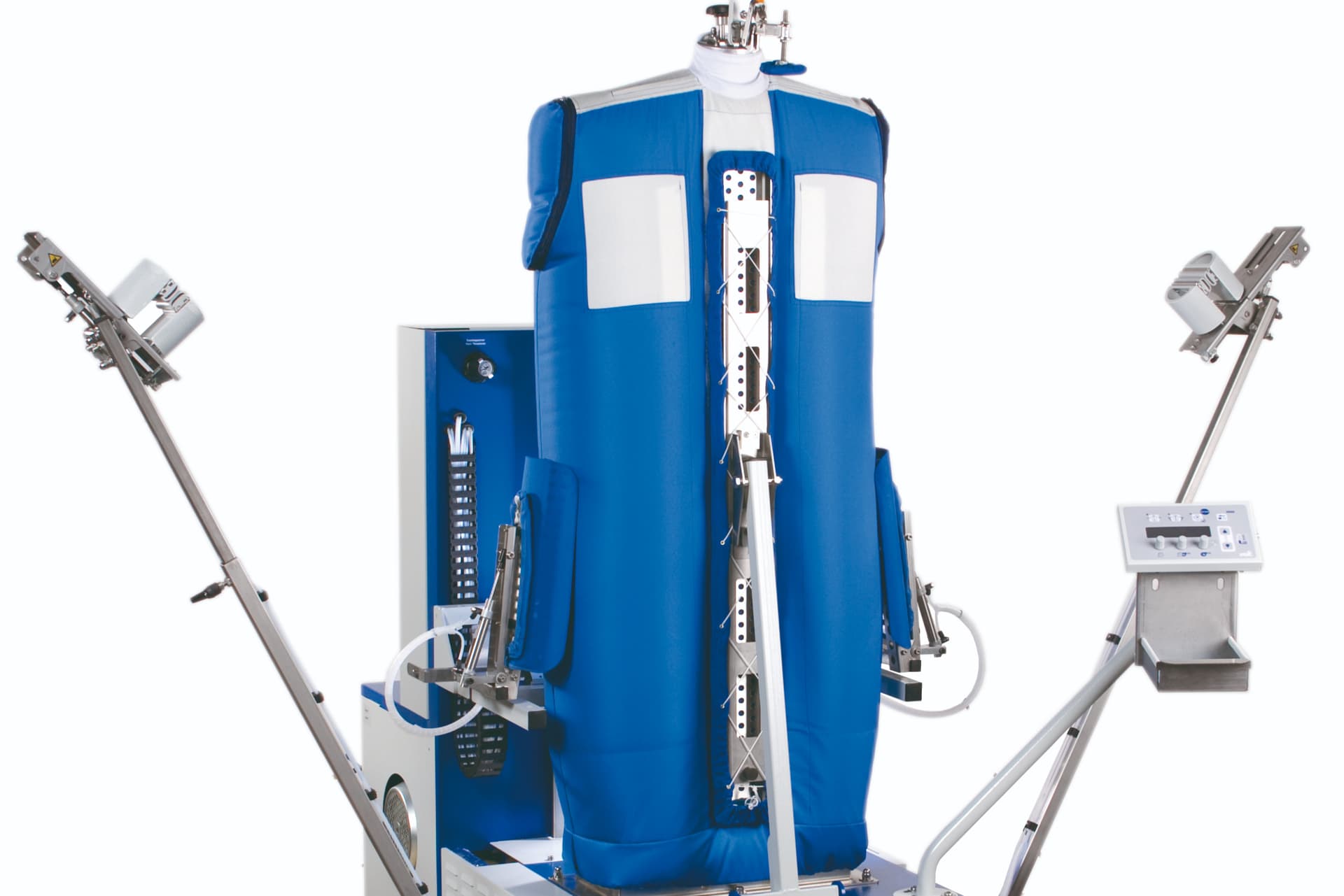 The big advantage of this machine is its universal usability. It is made for shirts and blouses but can also be used for finishing sports jackets and coats. The pneumatic sleeve tensioners for short and long sleeve shirts finish the sleeves without marks. The powerful hot air fan provides enough power to finish shirts very efficiently with good quality. With the exchangeable lapel clamps the finisher can be adapted to your individual needs.